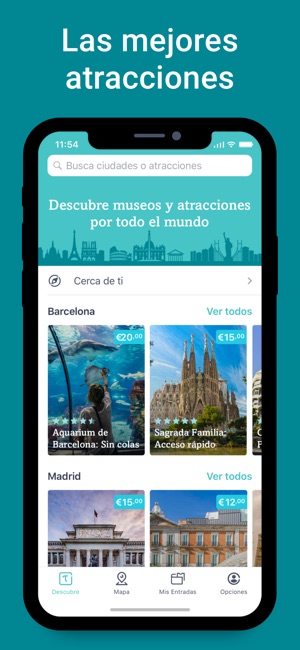 Explora los museos más populares o las atracciones más divertidas, y consigue las entradas en tu móvil.