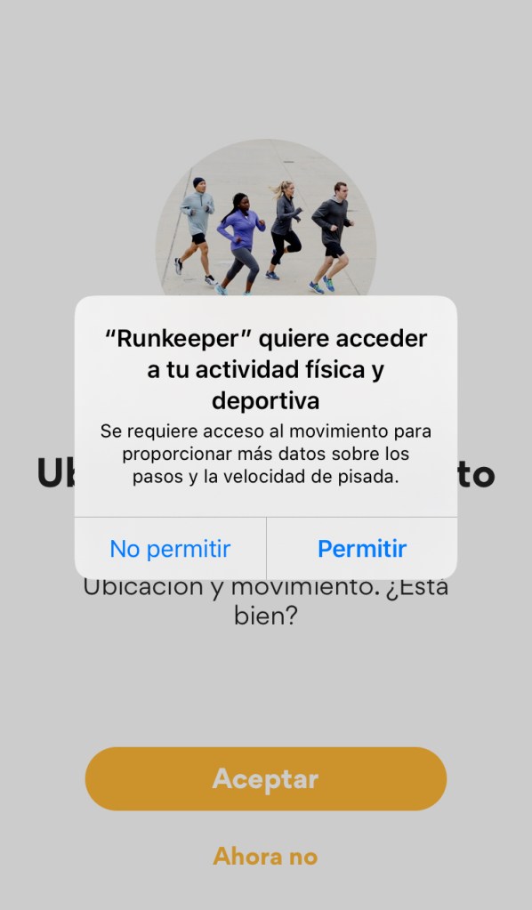 - Por supuesto y para que la App destape todo su potencial tendremos que darle permiso para que nos localice, esto le da todo el sentido a Runkeeper para ofrecer datos importantes a posteriori.