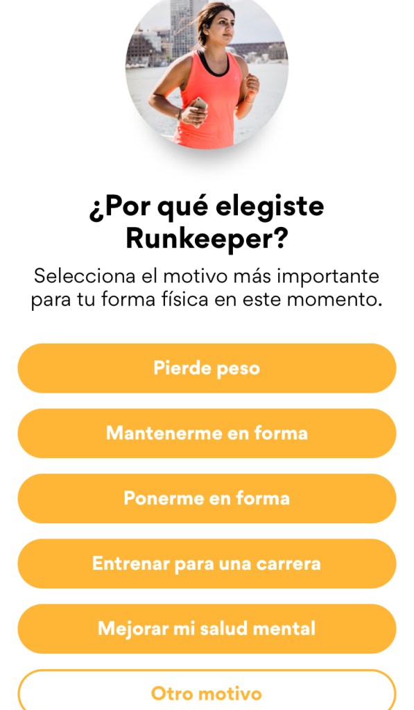 - Por último Runkkeper nos preguntará cual es nuestro enfoque para usar la App, de esta respuesta depende que luego nos pueda sugerir actividades que nos motiven adecuadamente.