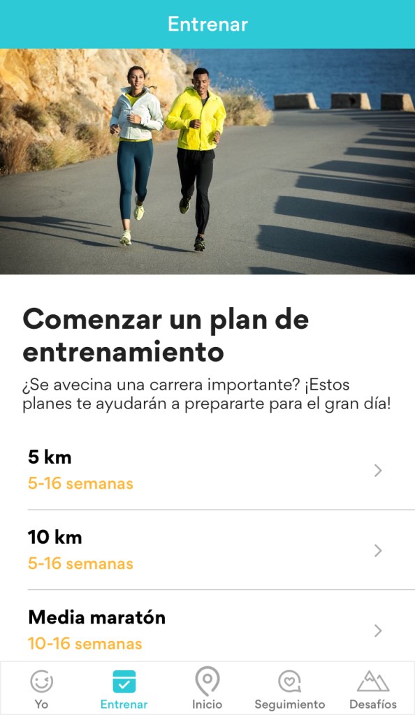 - ENTRENAR. Una sección para planificar entrenamientos, crear planes y recibir ideas de cómo afrontar los retos a superar. Este apartado esta enfocado a quienes ya practican con la aplicación y quieren profundizar en su uso y ver hasta donde les lleva la práctica de este deporte.