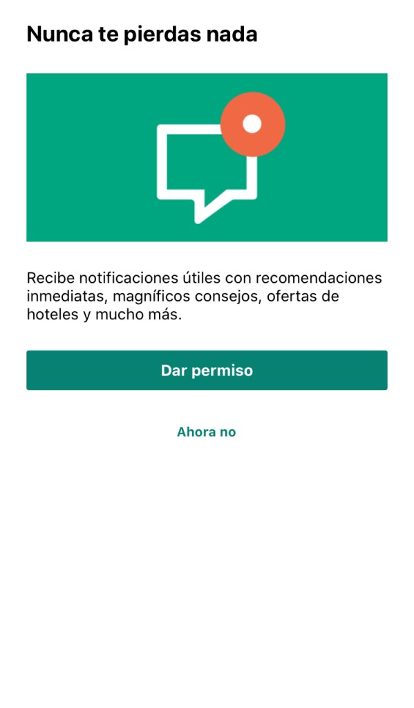 - Después nos pedirá permiso para enviarnos notificaciones, algo muy útil para localizar lugares de interés si pasamos cerca o para darnos consejos y enviarnos ofertas.