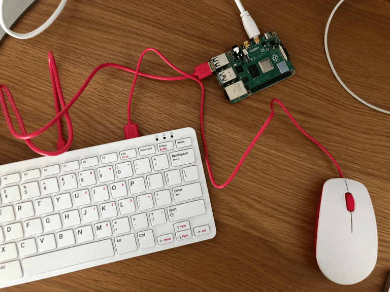 El año pasado, cuando la Fundación Raspberry Pi presentó la Raspberry Pi 4, la fundación también aprovechó esta oportunidad para lanzar un ratón y un teclado. Por supuesto, se pueden usar estos accesorios con una Raspberry Pi. Y su configuración básica se vería así: