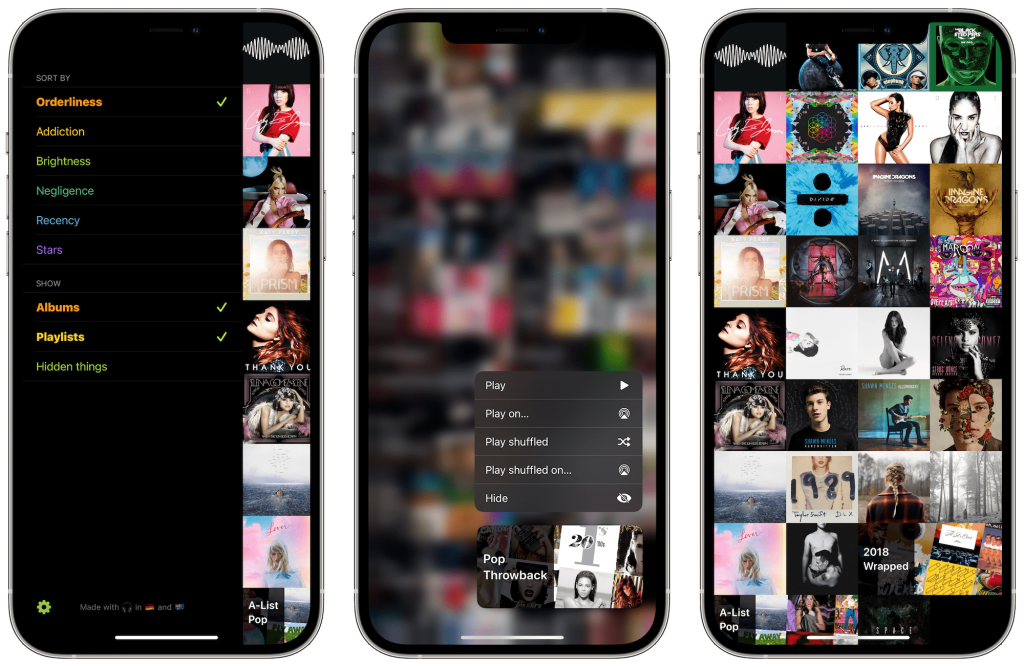 Además de las secciones de la biblioteca de música local, como álbumes y listas de reproducción, también podemos agregar Para usted, Nuevas canciones, Hot Tracks y otras secciones directamente desde Apple Music. Con una función llamada Magic Mix, puede crear listas de reproducción similares a las de Genius con filtros para artistas, álbumes, géneros, compositor, recuento de reproducciones y otros. La aplicación también viene con múltiples widgets para la pantalla de inicio de iOS, lo cual es ideal para personalizar el iPhone y al mismo tiempo facilita el acceso a nuestras canciones favoritas. Esto incluye los widgets Now Playing, Magic Mix y Music Collection. Incluso tiene Cover Flow.