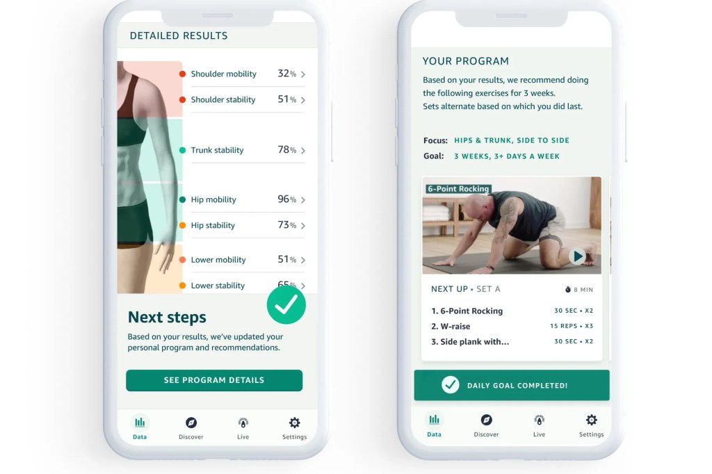 Pronto, el servicio de fitness Halo de Amazon ofrecerá usar la cámara del smartphone y algo de inteligencia artificial basada en la nube para crear un escaneo de nuestro «estado de movimiento». Después de una sesión de 5 a 10 minutos en la que te pones en diferentes poses para la cámara, los servidores de Amazon analizarán el video y lo usarán para crear una rutina de entrenamiento personalizada para mejorar la «estabilidad, movilidad y postura». Se espera que el servicio se lance «en las próximas semanas».