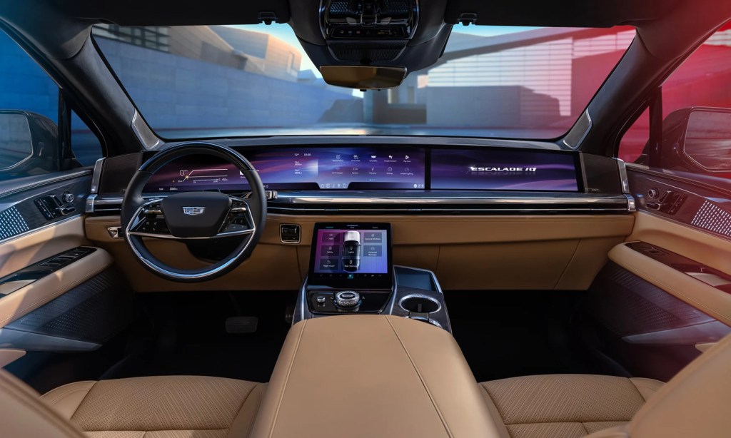 Con dimensiones imponentes de cerca de 5,8 metros de largo, el Cadillac Escalade IQ combina lujo y practicidad. El volumen de carga interior se expande a más de 3,6 metros cúbicos cuando se pliegan los asientos de la segunda y tercera fila. La opulencia se combina con la conectividad gracias a una pantalla LED de doble pantalla de 55 pulgadas que domina el salpicadero y un sistema de infoentretenimiento basado en Android Automotive OS, que incluye Google Assistant, Google Maps y Play Store.