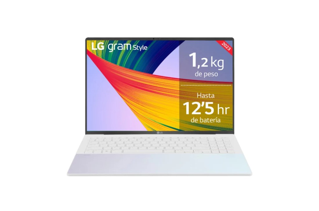 - Diseño Estético Impresionante: El LG Gram Style se destaca con su diseño iridiscente y camaleónico, que cambia de color según el ángulo y la luz, creando una apariencia visualmente impactante y única.