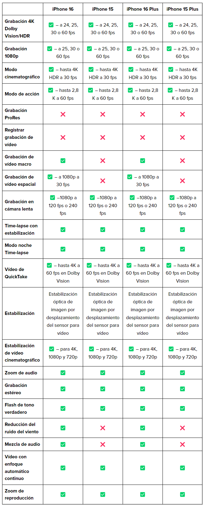 Aunque la mejora en la duración de la batería es modesta, el iPhone 16 ofrece una ligera ventaja en la reproducción de vídeo, con hasta 27 horas de autonomía frente a las 26 horas del iPhone 15. Aunque no es una diferencia drástica, aquellos que prioricen la duración de la batería en su día a día podrían apreciarla.