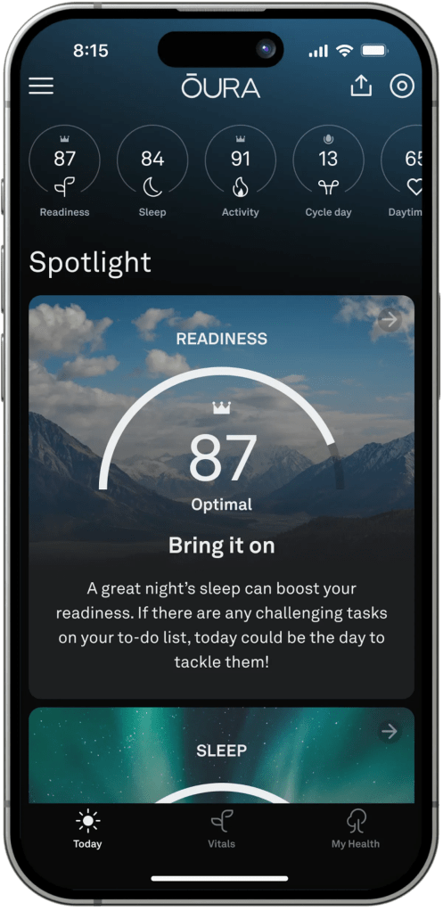 Además del hardware, Oura ha rediseñado por completo su aplicación móvil para hacerla más intuitiva y fácil de usar. La nueva interfaz ahora se organiza en tres secciones principales: Hoy , Signos vitales y Mi salud . Esto facilitará a los usuarios acceder a sus datos biométricos y las tendencias a largo plazo.