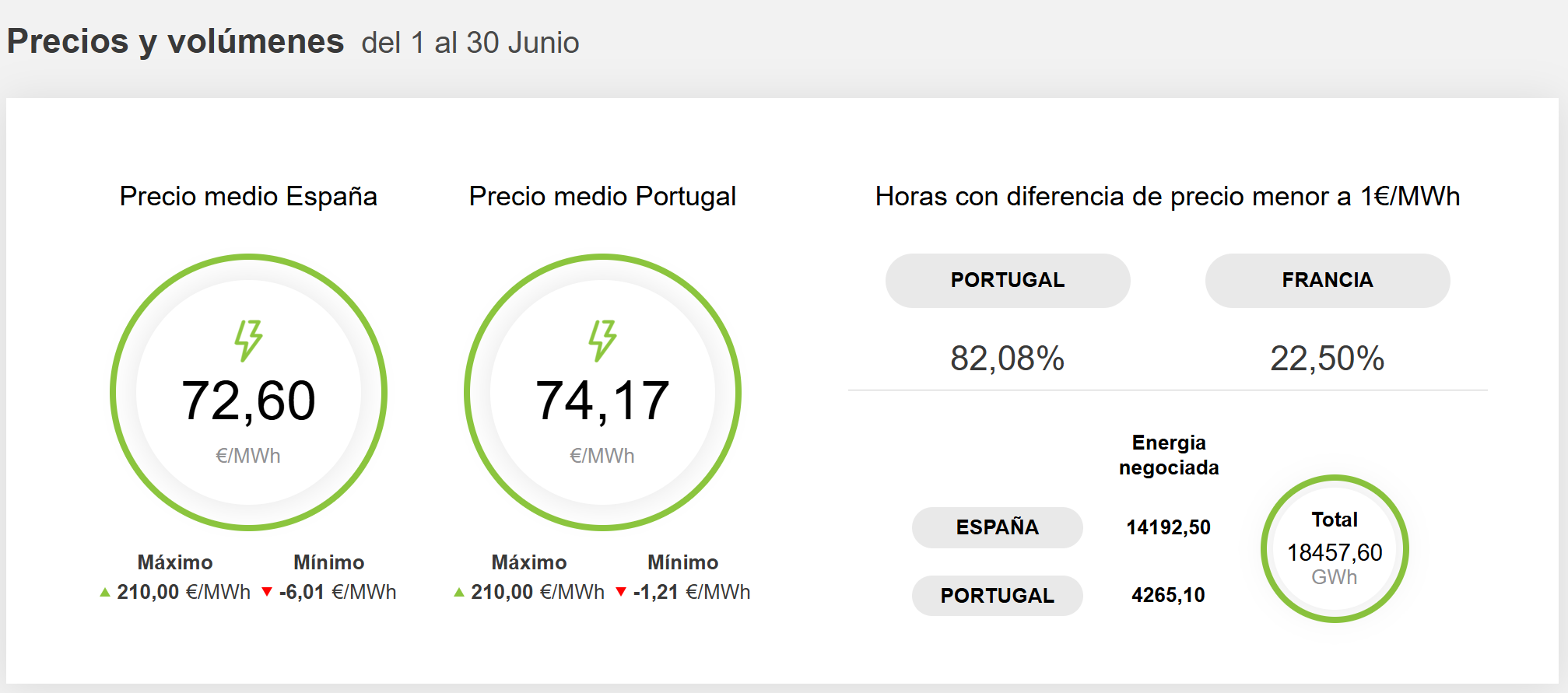 Datos sobre los precios de la energía en el mercado ibérico